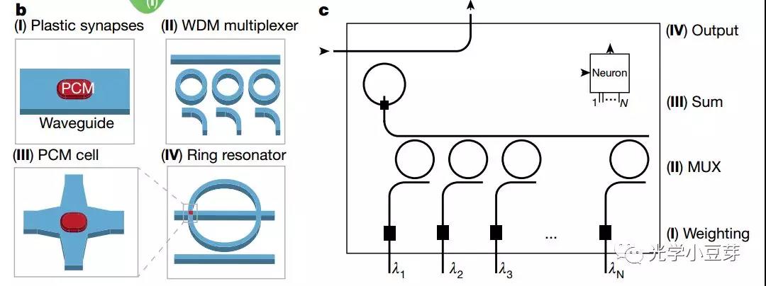 下圖中的結(jié)構(gòu)I, 作為突觸單元,調(diào)控光脈沖信號(hào)的強(qiáng)度,相當(dāng)于乘法器
