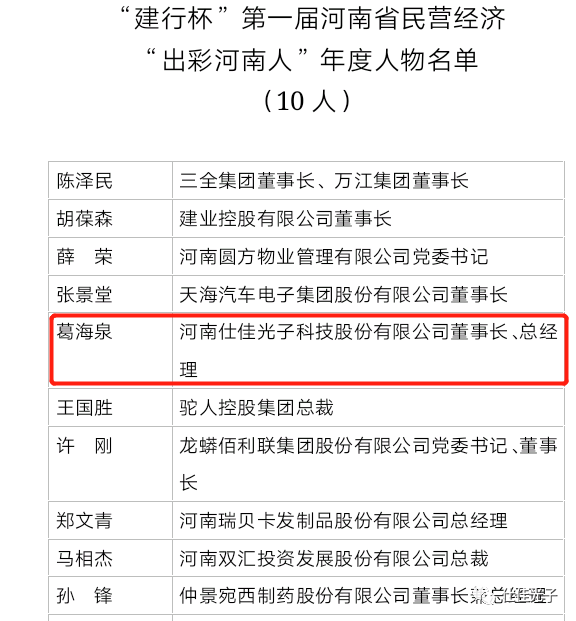 河南仕佳光子科技股份有限公司董事長、總經(jīng)理葛海泉先生榮獲“河南省民營經(jīng)濟(jì)年度人物”稱號!