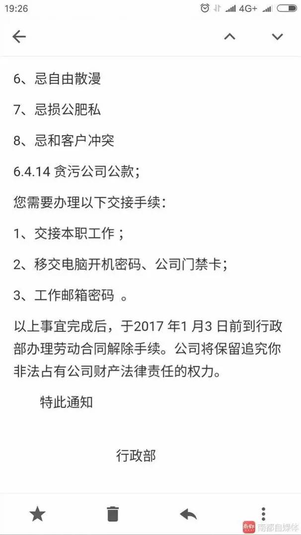 辭退郵件曝光