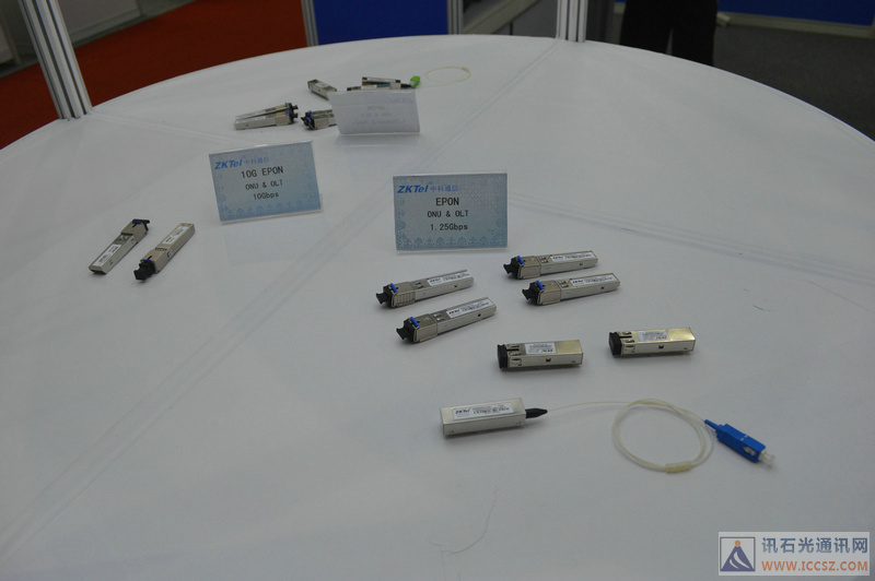 光器件也是吸引客戶的地方,紹興中科帶來了10G COMBO PON OLT BOSA、10G Triplexer SFP+ EPON OLT、XGSPON OLT、ONU Diplexer、25G 1310nm DFB TOSA/ROSA、GPON ONU BOSA,、EPON ONU BOSA以及同軸類10G TOSA/ROSA等。