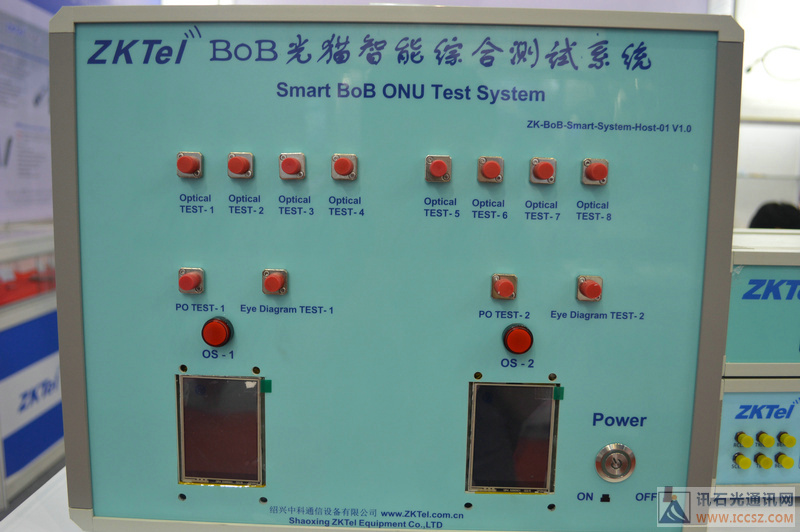 紹興中科的測試設(shè)備同樣吸引客戶,王總介紹公司展出了用于光電測試的智能調(diào)測設(shè)備以及系統(tǒng),如155M-4.25Gbps誤碼儀、10G誤碼儀、100G誤碼儀、智能程控光控系統(tǒng)、時鐘恢復系統(tǒng)、程控可調(diào)光衰減設(shè)備、程控光開關(guān)、LIV激光器特性測試儀、接收器件測試儀、BoB EPON&GPON光貓智能綜合調(diào)測系統(tǒng)(1拖8,1拖16,1拖24可選)、光模塊智能調(diào)測系統(tǒng)等等。