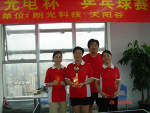 本次乒乓球賽分男女單打和男女混合雙打,共有40多名光通訊業(yè)界人士參加。女子單打冠軍由中國(guó)網(wǎng)通深圳分公司的卜杰奪得,亞軍為深圳騰天科技的鄭泓,訊石公司的吳娜贏得季軍。男子單打人數(shù)較多,競(jìng)爭(zhēng)激烈,驊國(guó)電子的王盛賢專程從東莞趕來參加比賽,他的球技高超,幾場(chǎng)下來所向無敵,贏得了男子單打冠軍。男子亞軍和季軍分別為光纖在線楊宇定、訊石公司羅永。