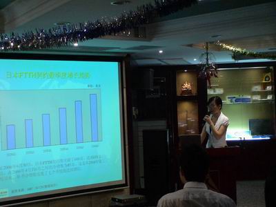 第二個環(huán)節(jié)是訊石聯(lián)誼會的必修課《十月光通訊市場動態(tài)》由訊石吳娜講演。演講內容主要是十月份全球光通訊市場動態(tài),通過結合二季度市場數(shù)據(jù),分析了二季度歐美器件市場、日本FTTH增長趨勢、美國FTTH二季度用戶情況并制作有相關圖表。除此外,從運營商、系統(tǒng)設備、光器件、原材料四方面分析了十月光通訊市場動態(tài)。