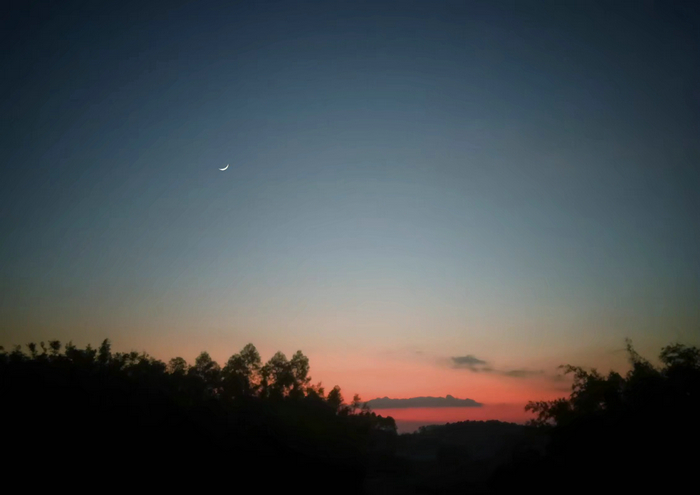 作品描述:鴻蒙的夜色來(lái)襲,晚霞埋進(jìn)長(zhǎng)云之間,月牙高掛,飛鳥(niǎo)歸林。晝夜更替,萬(wàn)物生息。祖國(guó)的山河即雄壯多姿,也靜謐安詳!