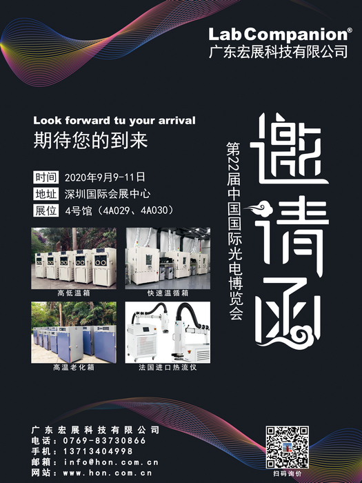 ICC訊 2020年9月9日至11日,在第22屆中國國際光電博覽會上,宏展科技將在4號館4A029、4A030隆重亮相,期待您的蒞臨!