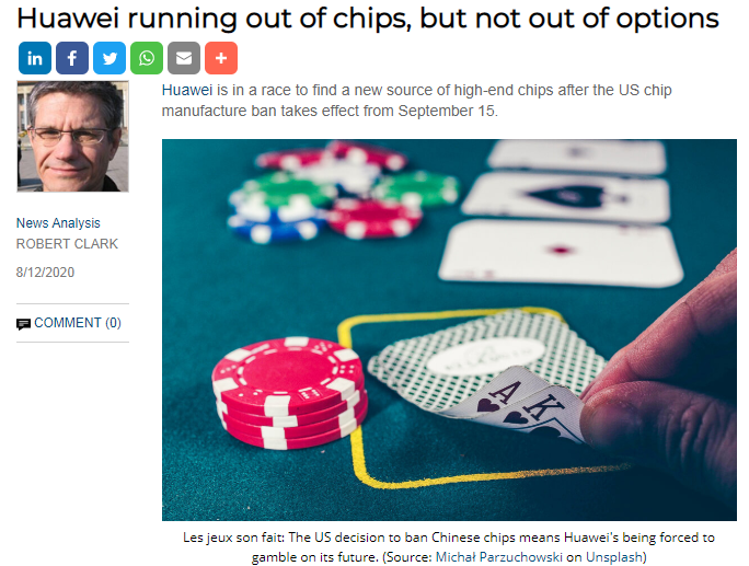 ICC訊 (編譯:Anton)據LightReading報道,在美國芯片制造禁令9月15日生效之前,華為正在尋找高端芯片的新來源。華為移動設備部門主管俞城東(Richard Yu)表示,華為將繼續(xù)在第四季度推出其旗艦產品Mate 40智能手機,但它可能是華為自己的麒麟芯片中的最后一款。