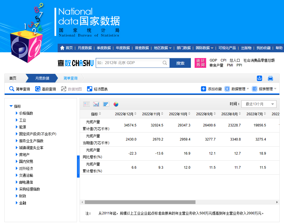 ICC訊 隨著國家統(tǒng)計局公布2022年12月全國光纜產(chǎn)量,2022年全年我國光纜累計產(chǎn)量34574.5萬芯千米,光纜產(chǎn)量累計增長6.6%。