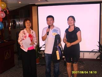 恒寶通石紅紅有“小宋祖英”之稱,一曲《好日子》把全場氣氛推到一個新的高潮。那甜美的歌聲一點都不遜色于宋祖英,最終獲得比賽的第二名。同樣來自恒寶通的劉禮程以一曲周杰倫《簡單愛》最終贏得了最具偶像氣質獎,他高超的演唱水準和帥氣的裝扮轟動了全場。天陽谷的項目經(jīng)理王莉演唱的是日本名歌《北國之春》,盡管屏幕顯示的是中文字幕,可她演唱全部是用日語完成,還原了歌曲的原汁原味,有本次活動的“才女之稱”,我們不僅感嘆光通訊真是人才濟濟。