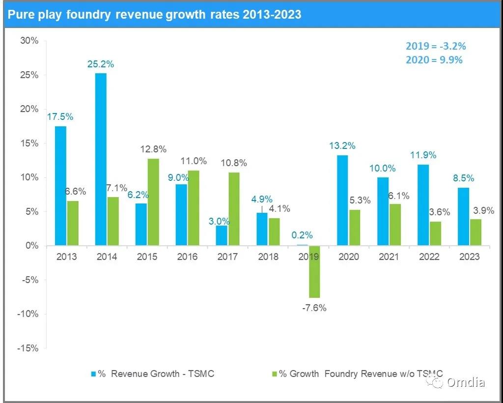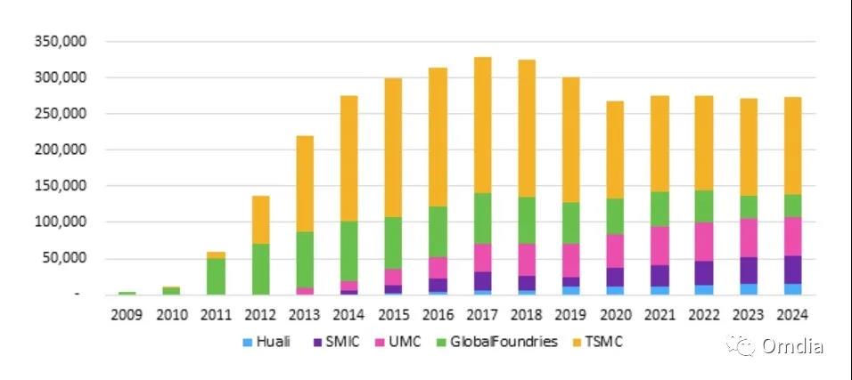 從全球純晶圓代工的營收趨勢來看,除去臺積電引領(lǐng)的最先進工藝的高毛利,其他全球的晶圓廠營收主要來自于穩(wěn)定成熟的工藝。純晶圓代工的企業(yè)中,聯(lián)電、Globalfoundry、SMIC等,在28nm(以及相關(guān)衍生工藝)上都有穩(wěn)步的性能提升及各種新產(chǎn)品的導(dǎo)入來滿足客戶不同需求。
