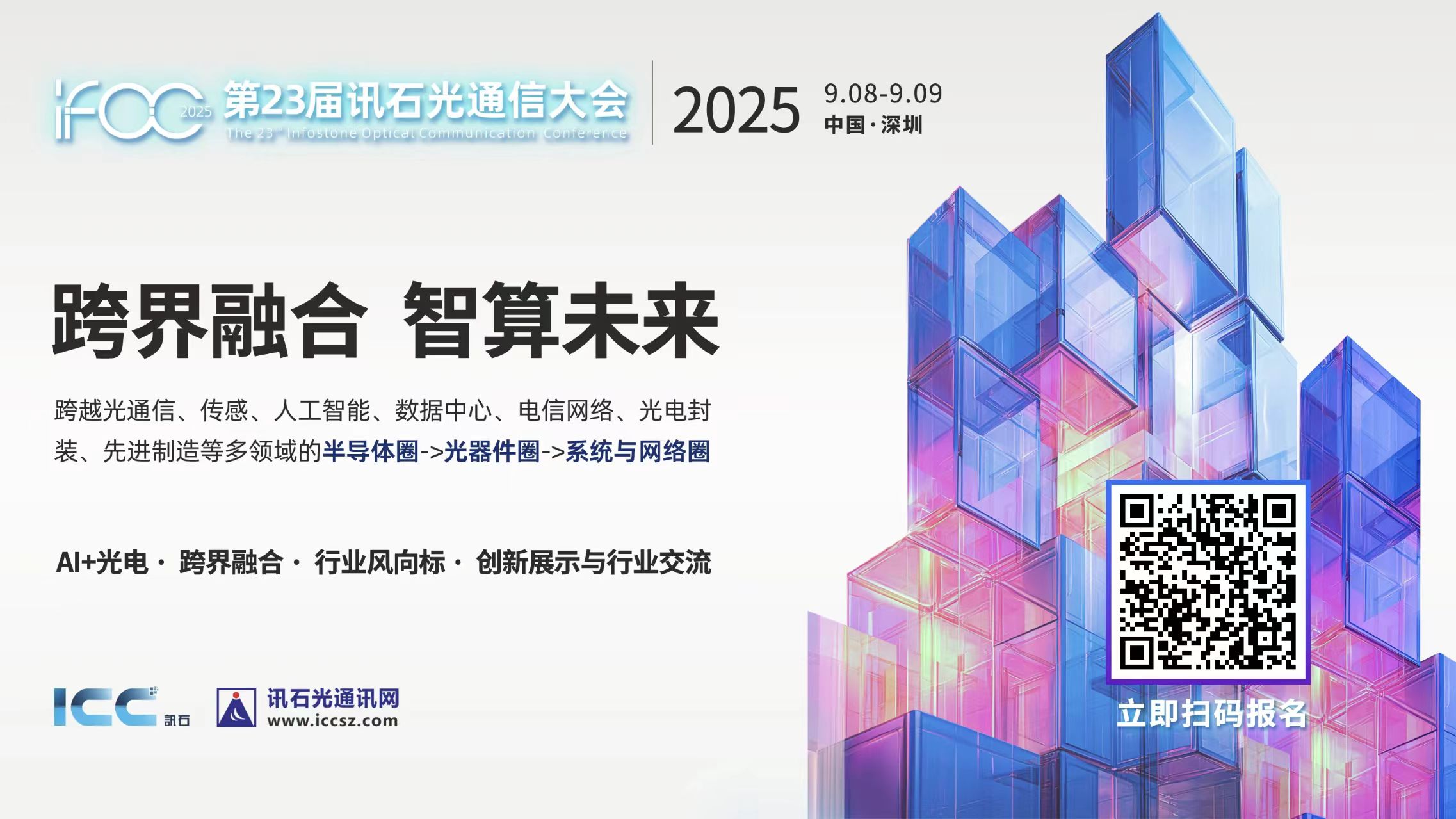 ICC訊 一年一度光通信行業(yè)盛會IFOC 2025將在9月8-9日于深圳拉開序幕,年度盛會光通信行業(yè)市場與技術發(fā)展風向標,囊括整條光通信產(chǎn)業(yè)鏈,涉及AI算力、光網(wǎng)絡、超節(jié)點、SerDes、跨域的AI網(wǎng)絡、CPO、空芯光纖、光電芯片、硅光薄膜鈮酸鋰等等。