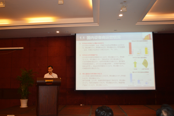 會議正式開始,首先由蘇州旭創(chuàng)科技研發(fā)部光學(xué)總監(jiān)孫雨舟首先發(fā)表了題為《Photonics in datacenter》的演講,演講內(nèi)容提到了云數(shù)據(jù)中心的流量增長趨勢,ofc2016大熱的PAM4技術(shù)等熱門技術(shù),專業(yè)而生動的演講給會議開了好頭,帶動了全場熱烈氣氛。