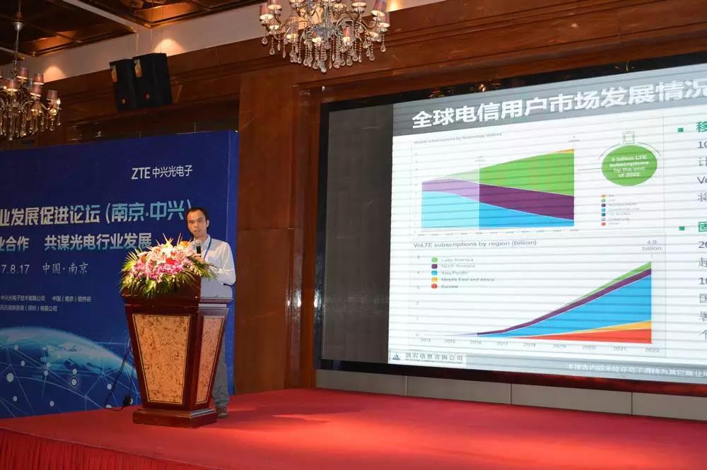 ICCSZ訊 8月17日,中興通訊以“光電子產(chǎn)業(yè)合作發(fā)展與技術(shù)交流”為主題,在南京成功舉辦2017光電子產(chǎn)業(yè)發(fā)展促進(jìn)論壇。本次光電子產(chǎn)業(yè)發(fā)展促進(jìn)論壇由中興光電子技術(shù)有限公司和中國(guó)(南京)軟件谷主辦、訊石信息咨詢(xún)(深圳)有限公司協(xié)辦,南京市政協(xié)副主席、雨花臺(tái)區(qū)委書(shū)記兼中國(guó)南京軟件谷工委書(shū)記黃河,中興通訊高級(jí)副總裁陳杰、中興光電子總經(jīng)理徐勇積以及來(lái)自國(guó)內(nèi)外的120余家通信企業(yè)的280余名代表出席了論壇。共計(jì)16位光通信領(lǐng)域的知名企業(yè)和學(xué)術(shù)界專(zhuān)家教授代表在論壇上發(fā)表了主題演講。