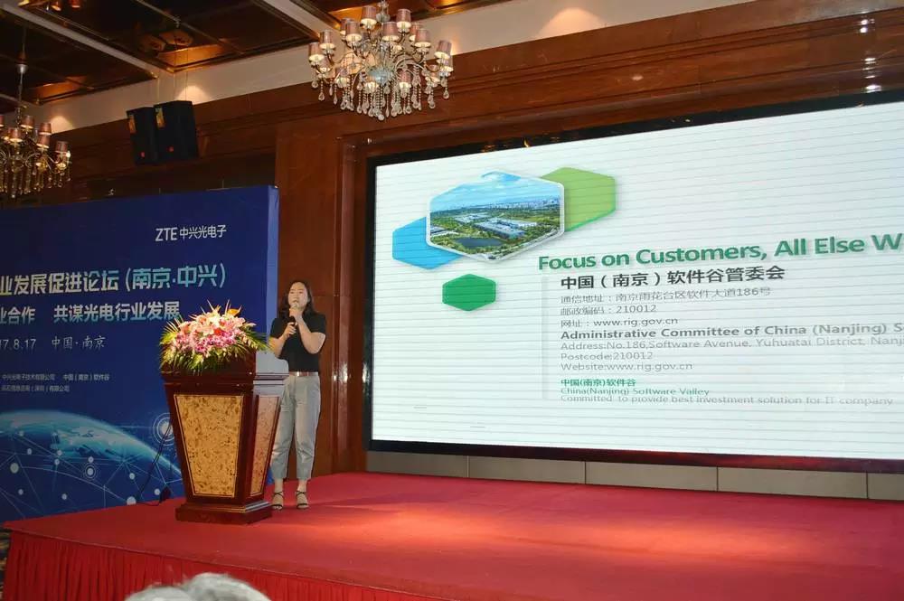 中興通訊在南京的發(fā)展離不開(kāi)南京優(yōu)秀的產(chǎn)業(yè)集群優(yōu)勢(shì),中國(guó)(南京)軟件谷李本華局長(zhǎng)向在座光電子產(chǎn)業(yè)界闡述了軟件谷產(chǎn)業(yè)環(huán)境與政策,誠(chéng)邀企業(yè)共促發(fā)展,共同分享產(chǎn)業(yè)集群帶來(lái)的發(fā)展便利。