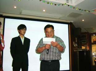 訊石現(xiàn)場(chǎng)贈(zèng)送會(huì)員獎(jiǎng)品 圖為陳教授在為會(huì)員頒獎(jiǎng)