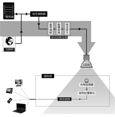 可見光通信,是指利用熒光燈或發(fā)光二極管發(fā)出的高速明暗變化光信號(hào)來傳輸信息的一種技術(shù)手段。與無線電通信相比,可見光通信開拓了新的頻譜資源,它的傳輸速率、安全性和私密性極高,無電磁干擾和輻射,也無需頻段許可授權(quán),借助LED燈就可低成本實(shí)現(xiàn)高速率無線通信,是典型的綠色通信技術(shù)。在2015年被聯(lián)合國(guó)定為“光和光基技術(shù)國(guó)際年”后,可見光通信的價(jià)值和應(yīng)用潛力為更多人所熟知,已成為世界各國(guó)競(jìng)相角逐的下一代核心通信技術(shù)。