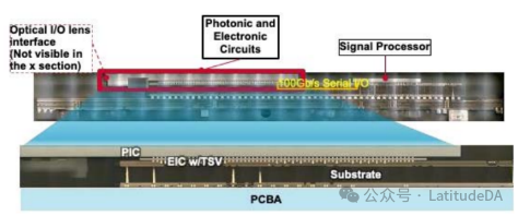 共封裝的關(guān)鍵技術(shù)之一是實現(xiàn)超高密度電-光 I/O 引腳配準。博通的 SCIP(Silicon Chiplet Photonics Package)技術(shù)利用 TSV 和高密度鍵合,實現(xiàn)硅基光電子chip 和 ASIC chip 在 130um 引腳距下對準(圖 1)[1]。高密度短距(<150 um)線路實現(xiàn)了每比特能量效率低于 1pJ,比現(xiàn)有技術(shù)提高 10 倍。博通實現(xiàn)高密度三維堆疊芯片級封裝,采用晶圓鍵合的加工過的 ASIC 和光子晶圓 (圖 2)[1]。實現(xiàn)穩(wěn)定的對準和鍵合以及晶圓薄化(75 um)、TSV 開槽均勻性和隱形切割等技術(shù)對高密度集成至關(guān)重要。隨后基板上順序共封裝鍵合的芯片/光學(xué)引擎和 ASIC 利用焊膏回流和精確的底部充填來實現(xiàn)。