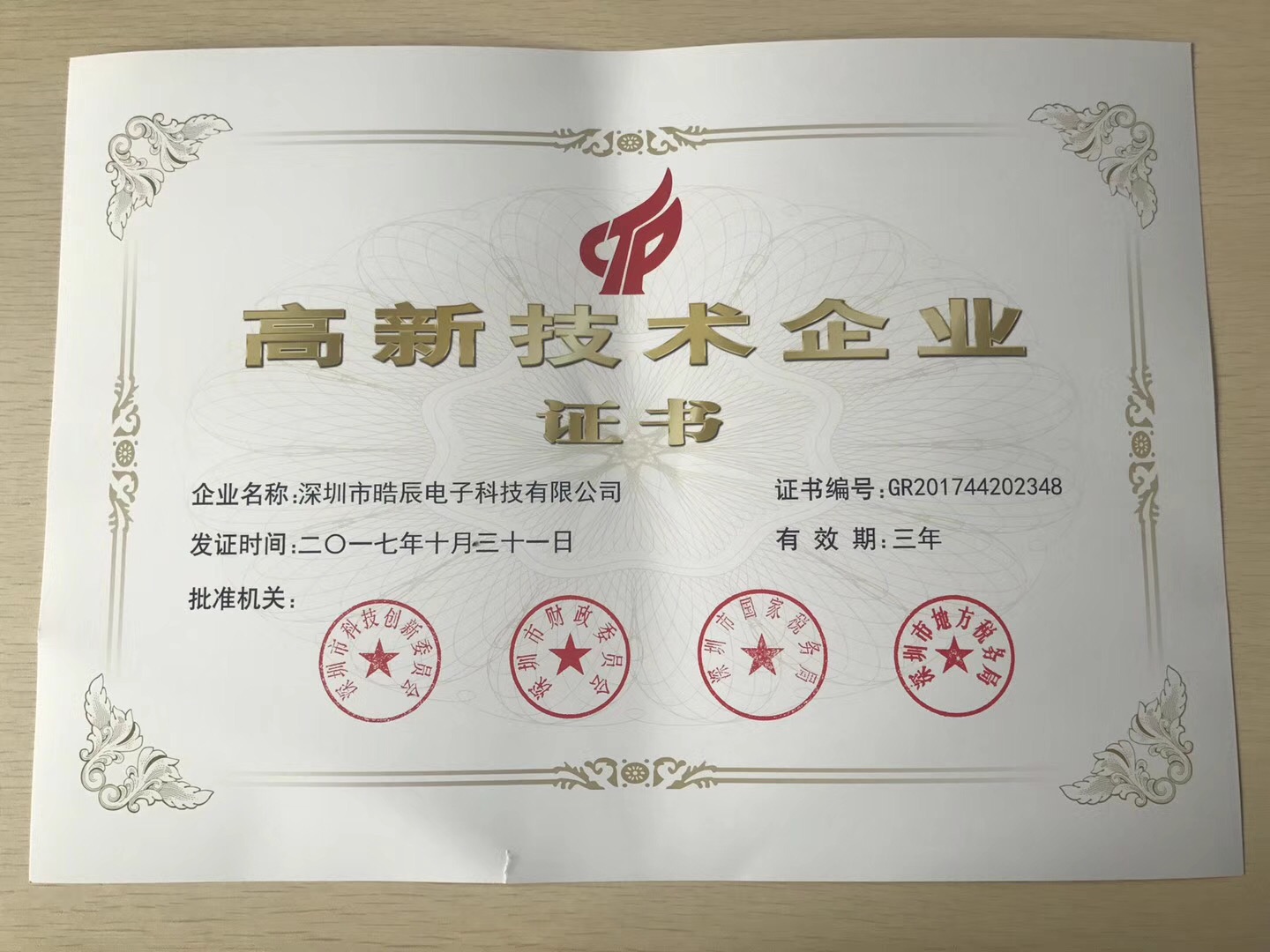 ICCSZ訊 日前,深圳市晧辰電子科技有限公司(簡稱“晧辰”)獲得深圳市科技創(chuàng)新委員會等頒發(fā)的“高新技術(shù)企業(yè)”認(rèn)證,有效期三年,認(rèn)證信息如下: