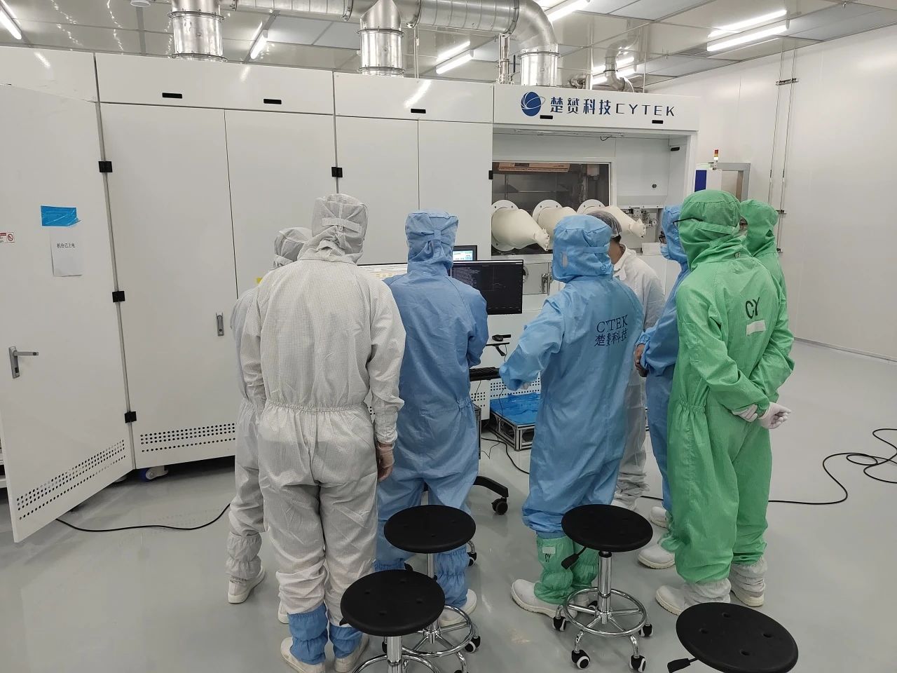 國創(chuàng)中心(蘇州)圍繞第三代半導體核心共性技術(shù),建設(shè)開放共享的公共研發(fā)平臺,致力于為產(chǎn)業(yè)鏈提供支撐服務(wù),協(xié)助企業(yè)高效研發(fā),促進科技型領(lǐng)軍企業(yè)和中小微企業(yè)的快速成長。建設(shè)以來,通過開放創(chuàng)新、合作共贏的網(wǎng)絡(luò)化協(xié)同模式,與科研院所、高校、企業(yè)緊密合作,不斷補鏈強鏈。在本次首爐生長實驗中,采用的MOCVD設(shè)備是國創(chuàng)中心(蘇州)助力企業(yè)研發(fā)的新型國產(chǎn)設(shè)備。該臺設(shè)備的成功投用(如圖2),也是國創(chuàng)中心(蘇州)開放式建設(shè)創(chuàng)新研發(fā)平臺的成功探索實踐。