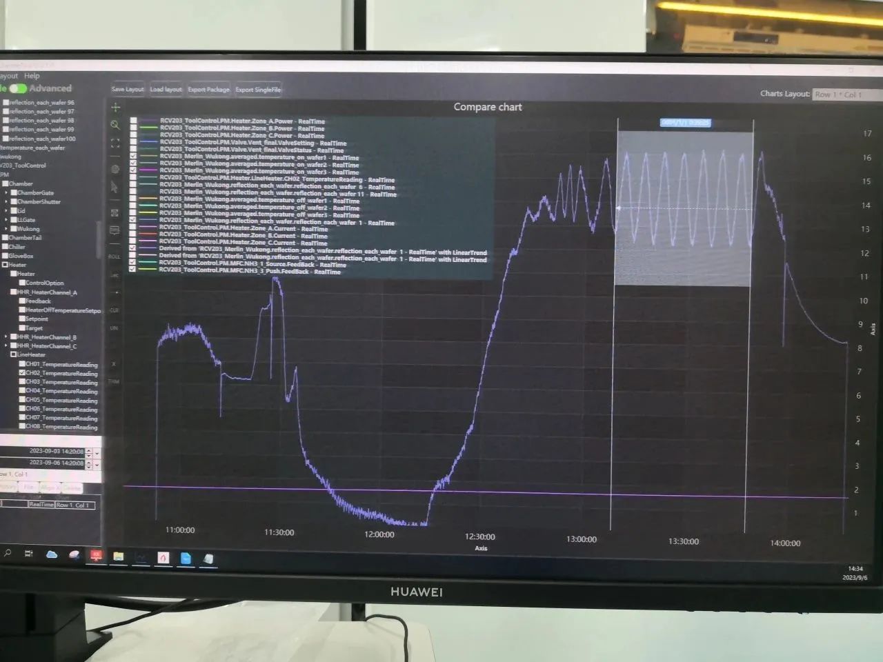 圖4 首爐生長的調(diào)試場景和原位監(jiān)控曲線