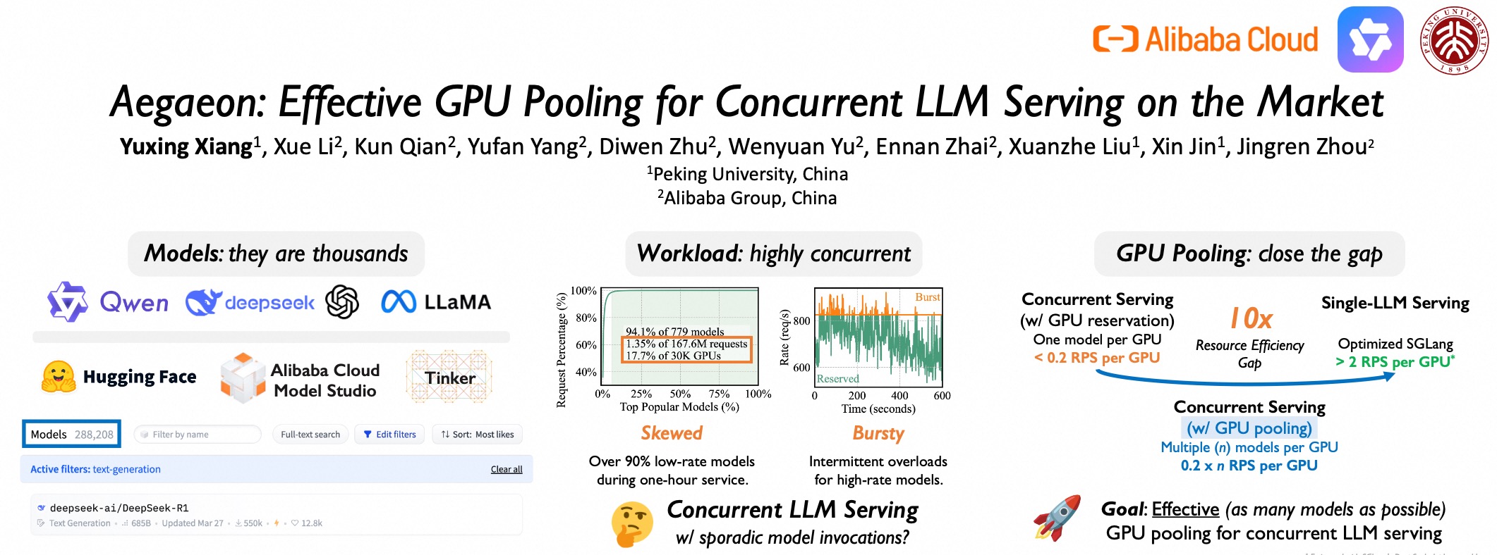 ICC訊 近日,頂級學(xué)術(shù)會議SOSP2025在韓國首爾舉行,本屆會議僅收錄66篇論文,其中阿里云提出的GPU池化服務(wù)多模型研究成果成功入選,該研究提出多模型混合服務(wù)系統(tǒng)Aegaeon,可大幅提升GPU資源利用率,目前其核心技術(shù)已應(yīng)用在阿里云百煉平臺。