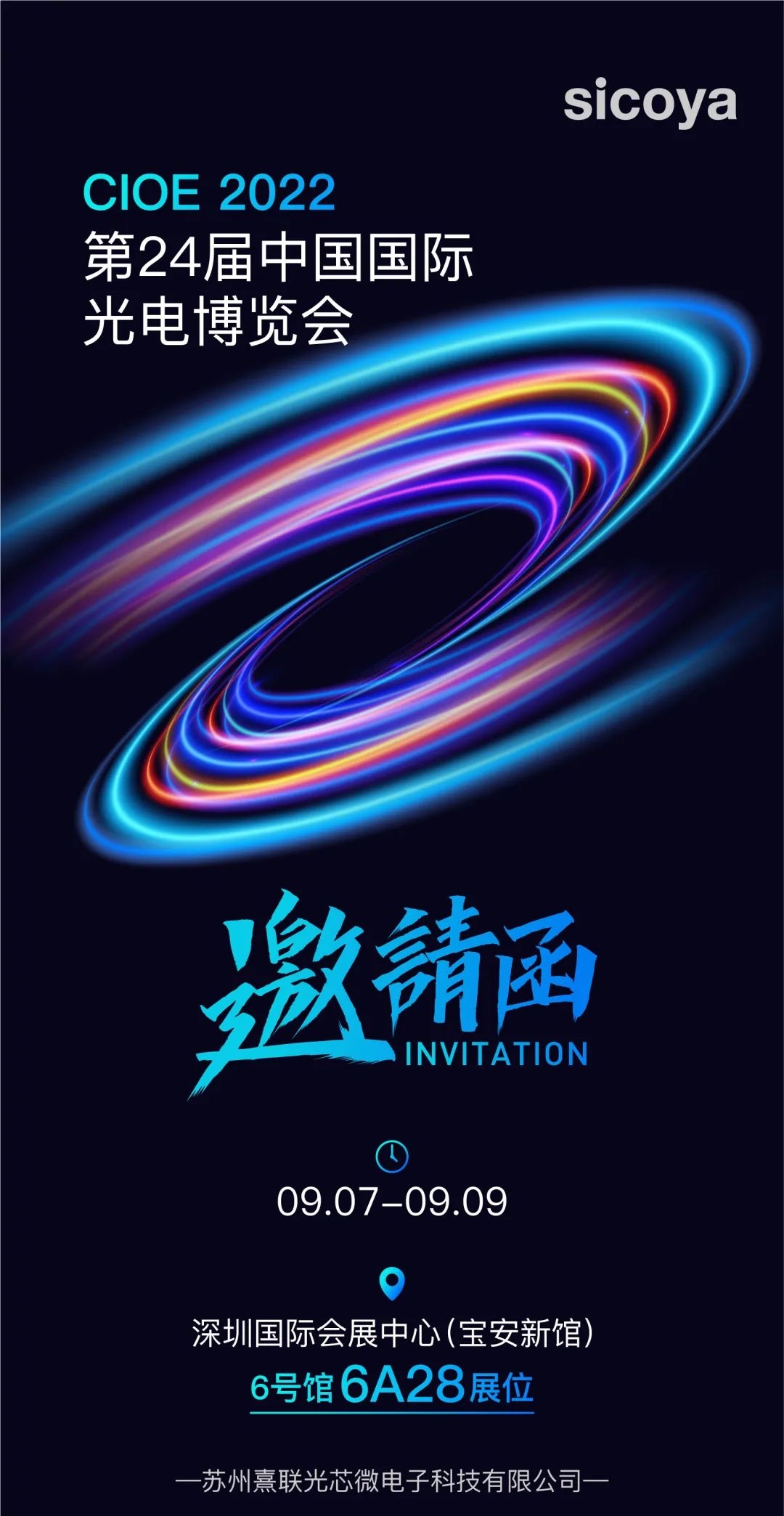 ICC訊 第24屆中國國際光電博覽會(CIOE 2022)將于9月7-9日在深圳國際會展中心舉行。蘇州熹聯(lián)光芯(Sicoya Global)首次亮相CIOE 2022,此次將帶來基于光電集成芯片技術(shù)的最新成果展示,展位號6號館6A28,歡迎廣大光電行業(yè)朋友及客戶蒞臨交流與合作。