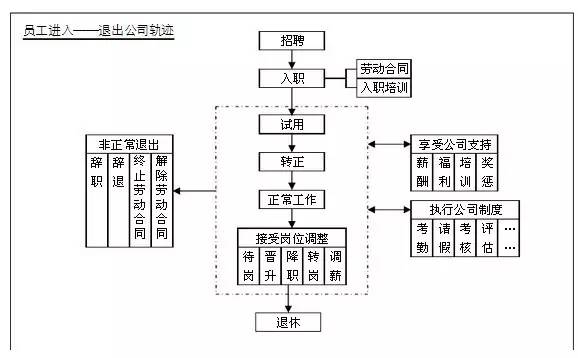 從員工進入——退出公司軌跡,招聘流程,績效管理考核以及評估,薪酬操作流程,福利——社保,獎懲,崗位調(diào)整,人才儲備,培訓(xùn),勞動合同等都有了一個清晰的梳理,建議大家收藏或分享給圈內(nèi)好友,時不時能對照理一理自己手頭的工作。