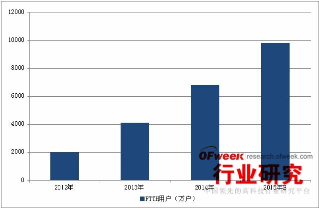 圖表4 2012-2015年中國FTTH用戶增長情況(單位:萬戶)