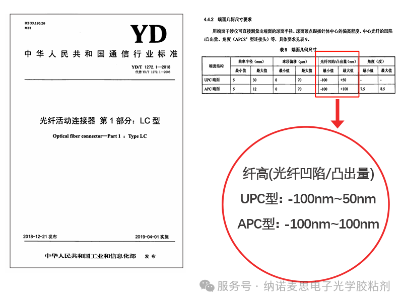 耐心的廠家會(huì)拿出一堆標(biāo)準(zhǔn),YD/T 1272、GR1221、IEC...并解釋膠水的這兩個(gè)參數(shù)和組裝后的纖高(即光纖凹陷/凸出量),有直接關(guān)系。