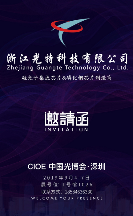 ICCSZ訊 浙江光特科技有限公司(簡稱:浙江光特)將攜硅光子集成芯片和高速探測器芯片亮相CIOE 2019,展位號:1號館 1026。 誠摯歡迎業(yè)內(nèi)同仁前來指導(dǎo)交流。