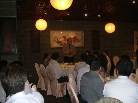 訊石與臺(tái)灣工研院一起組織兩岸業(yè)者座談聚餐,圖為原工研院光電所劉所長(zhǎng)席間講話。 |