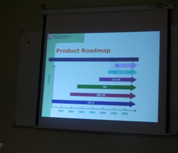 第二站:上詮光纖通信股份有限公司 從前源科技出來我們又來到了臺灣上詮光纖通信有限公司拜訪。目前上詮大部分生產(chǎn)都在上海,臺灣只有少部分生產(chǎn)線。公司業(yè)務處長林小姐和業(yè)務經(jīng)理林先生、采購管理師吳小姐熱情接見了訊石來訪團。林處長首先帶大家參觀了上詮一樓的產(chǎn)品展示區(qū),并詳細介紹了每種器件。據(jù)林處長介紹上詮目前在上海有六百多人,在美國有一個辦公室,臺灣七十人主要負責產(chǎn)品開發(fā)和設計。由于FTTH的帶動公司預計07年將成長20%到30%。 訊石赴臺考察團中很多團員都與上詮公司有直接的業(yè)務往來,雙方在座談期間交換了意見并互相認識,因為大陸客戶一般都與上海上詮接觸比較多,這次大家的會面雙方都倍感親切。