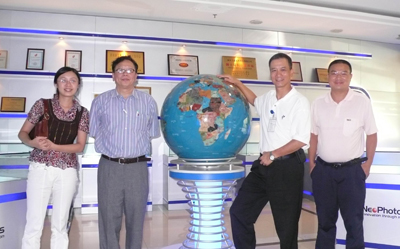 一貫低調的陳總一再強調他是不希望搞個人推廣,所以希望描寫他的文字越少越好。最后的合影選擇在深圳新飛通大堂里陳列的一個碩大的地球儀前,我們也衷心祝愿新飛通從光器件中型公司走向國際知名大公司,在世界地圖上大展拳腳,并期待盡早在股市上見其身影。