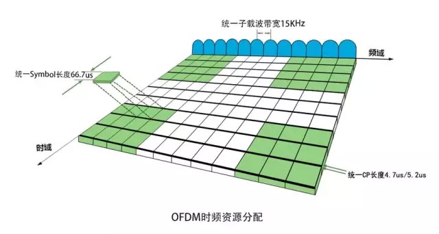 我們來(lái)看下OFDM的時(shí)頻資源分配方式(如圖2),在頻域子載波帶寬是固定的15KHz(7.5KHz僅用于MBSFN),而子載波帶寬確定之后,其時(shí)域Symbol的長(zhǎng)度、CP長(zhǎng)度等也就基本確定啦。