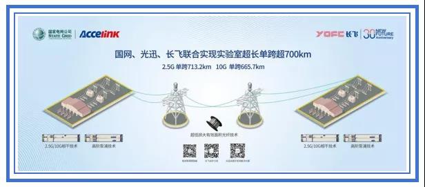Iccsz訊 近日,長飛光纖光纜股份有限公司(以下簡稱“長飛公司”,股票代碼:06869.HK)、國家電網(wǎng)公司信息通信分公司(以下簡稱“國網(wǎng)信通”)與武漢光迅科技股份有限公司(以下簡稱“光迅科技”,股票代碼:002281.SZ)共同宣布:采用長飛公司超低損耗大有效面積 G.654.E“遠(yuǎn)貝®超強(qiáng)”光纖和光迅科技E-ULH“增強(qiáng)型超長單跨距無中繼光路子系統(tǒng)”的三方合作項目,成功實現(xiàn)了10G系統(tǒng)665.7km和2.5G系統(tǒng)713.2km的單跨距無中繼實驗室傳輸測試,分別刷新了原單跨距2.5G和10G系統(tǒng)無中繼光傳輸的世界紀(jì)錄。