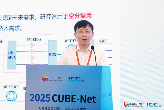 中國聯(lián)通研究院首席科學家唐雄燕博士發(fā)布《CUBE-Net網(wǎng)絡(luò)創(chuàng)新理念與光網(wǎng)絡(luò)十大產(chǎn)業(yè)技術(shù)趨勢》報告,歷經(jīng)2015年CUBE-Net 2.0(彈性云網(wǎng))到2021年CUBE-Net 3.0(智能算網(wǎng))的升級演進,高通量、高性能、高智能的算力智聯(lián)網(wǎng)成為中國聯(lián)通在網(wǎng)絡(luò)創(chuàng)新體系的重要實踐體現(xiàn),而下一代CUBE-Net 4.0將圍繞原生智網(wǎng)進行創(chuàng)新。CUBE-Net 3.0光網(wǎng)絡(luò)在智能時代呈現(xiàn)十大科技趨勢。一是面向智算互聯(lián),打造光網(wǎng)絡(luò)超強運力;二是人工智能賦能,邁向高階自智光網(wǎng)絡(luò);三是探索空分復(fù)用與空芯新型光纖;四是光電混合交換架構(gòu),使能高效綠色智算中心;五是光電集成,CPO重塑數(shù)據(jù)中心光互聯(lián);六是50G PON開啟萬兆光接入;七是通感一體,增強光網(wǎng)絡(luò)多維感知能力;八是光物理層安全,夯實數(shù)字基礎(chǔ)設(shè)施安全根基;九是FSO(空間光通信)與光纖通信協(xié)同,打造空天地一體化光網(wǎng)絡(luò);十是做強海洋光通信,構(gòu)建智能化綜合性海洋互聯(lián)網(wǎng)。