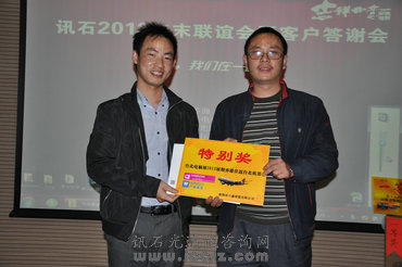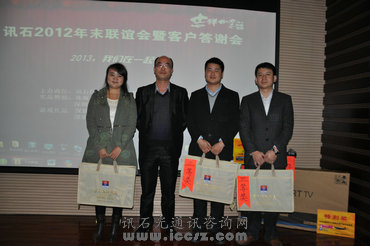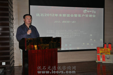 【訊石光通訊咨詢網(wǎng)】訊石2012年末聯(lián)誼會(huì)暨客戶答謝會(huì)今天下午(1月18日)在深圳福田葵花公寓圓滿舉行。本次活動(dòng)由訊石精心策劃、傾力打造,并獲得了珠海飛宇光電科技有限公司、深圳市微納光通信設(shè)備有限公司以及深圳騰天昊宇光通信、深圳市易飛揚(yáng)通信技術(shù)有限公司的贊助和支持。會(huì)議共迎來(lái)嘉賓80多人參加,氣氛異常熱烈,于今天下午18點(diǎn)圓滿結(jié)束。