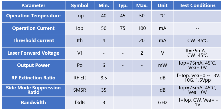 10G 1550nm/DWDM EML激光器,通過(guò)客戶(hù)端的眼圖測(cè)試及傳纖測(cè)試評(píng)估,可滿足傳輸網(wǎng)40/80km傳輸要求。