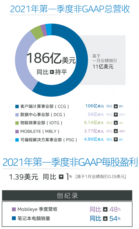 年第一季度財報。2021年第一季度非GAAP總營收為186億美元。高于一月業(yè)績指引11億美元。