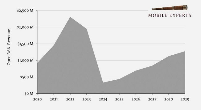 ICC訊 近日,Mobile Experts布了關(guān)于Open RAN的新預(yù)測(cè),展示了無線市場(chǎng)上前所未見的最奇特的市場(chǎng)增長(zhǎng)曲線。隨著Dish和Rakuten等在綠地網(wǎng)絡(luò)中部署Open RAN取得巨大成功后,O-RAN的部署在2024年戛然而止。