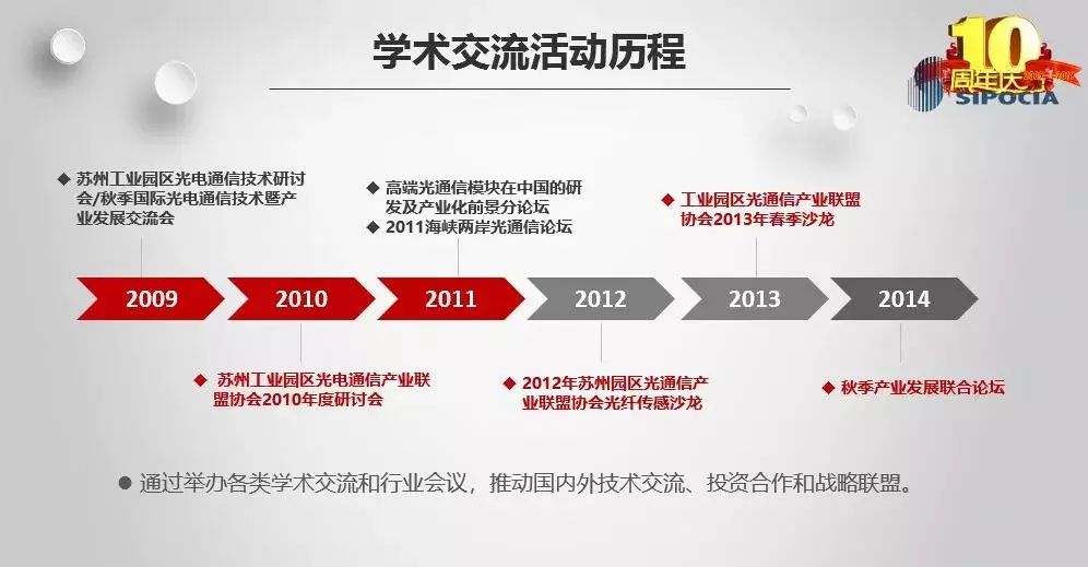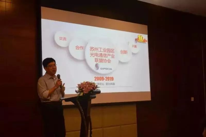 金秋十月,涼風(fēng)送爽。10月18日,蘇州光電通信產(chǎn)業(yè)聯(lián)盟協(xié)會(“SIPOCIA”)2019年度高峰論壇暨改選大會于10月18日下午在蘇州盛大舉辦,今年又恰逢協(xié)會成立十周年,大會有來自會員中際旭創(chuàng)、蘇州天孚、東捷光電、Ⅱ-Ⅵ、海光芯創(chuàng)、蘇納光電、海拓儀器及蘇州工業(yè)園區(qū)科技發(fā)展有限公司等30多家企事業(yè)單位近百名嘉賓代表齊聚一堂,就光電通信行業(yè)最新技術(shù)和市場話題進(jìn)行探討和交流,共同慶祝協(xié)會成立十周年。