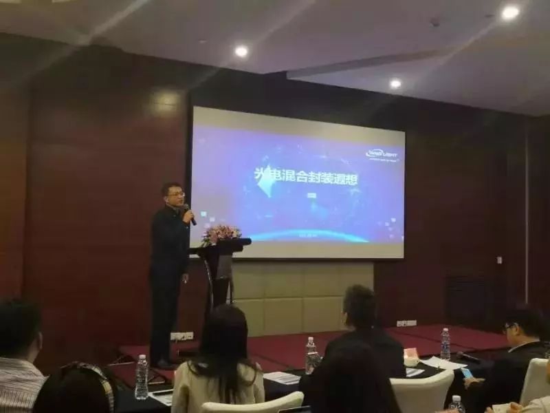 中際旭創(chuàng)副總經(jīng)理丁海博士分享了《光電混合封裝遐想》,丁總表示:隨著流量的高速增長,帶來了高帶寬的需求,進(jìn)而驅(qū)動光模塊技術(shù)發(fā)展和速率的不斷提升,隨著技術(shù)的發(fā)展,未來光電混合封裝(Co-Packaging)將是下一代技術(shù)的研究方向。旭創(chuàng)科技預(yù)計(jì)明年將演示800G光模塊,未來也將積極關(guān)注光電混合封裝技術(shù)的發(fā)展。