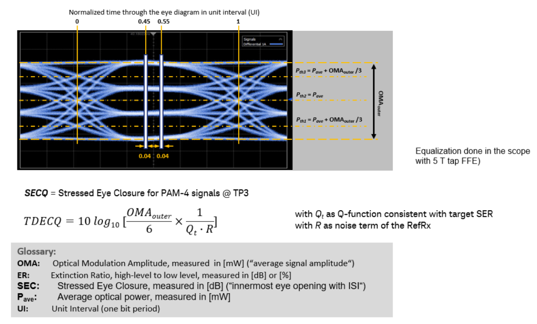 對于PAM4壓力眼,主要要求的兩個(gè)參數(shù)是outer OMA和SECQ。