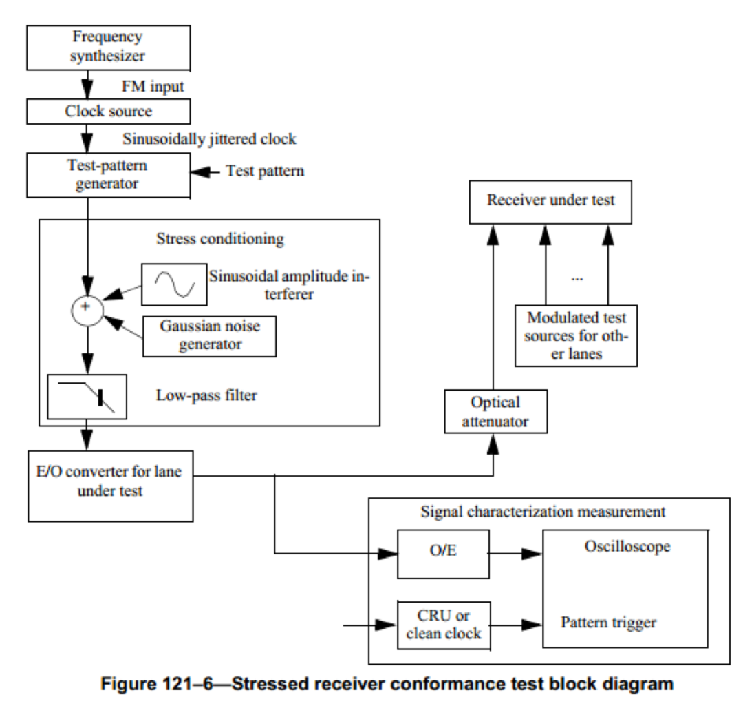 在IEEE802.3規(guī)范中,針對數(shù)據(jù)中心和云計(jì)算等應(yīng)用,規(guī)范規(guī)定了一系列高速接口標(biāo)準(zhǔn)。從較早的10G、40G以太網(wǎng)規(guī)范,到現(xiàn)在的100G以及正在制訂中的400G以太網(wǎng)規(guī)范中,都要求一項(xiàng)重要的測試項(xiàng)目:接收機(jī)的壓力容限。
