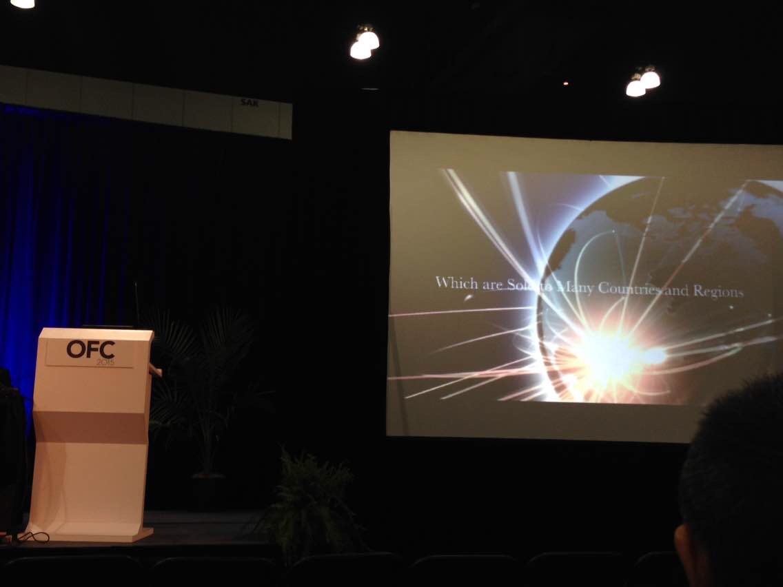 ICCSZ訊(編輯:Debi)一年一度的美國(guó)光纖通訊展覽會(huì)及研討會(huì)(OFC)終于接近尾聲了。OFC 2015 于2015年3月24-26日在美國(guó)加州洛杉磯會(huì)展中心舉行,其中,技術(shù)研討會(huì)于3月22-26日舉行。洛杉磯時(shí)間3月26日為展會(huì)最后一天,訊石客戶從現(xiàn)場(chǎng)傳回以下圖片,敬請(qǐng)欣賞。特別鳴謝康寧陳皓經(jīng)理等從現(xiàn)場(chǎng)傳回的圖片,也非常歡迎參展過(guò)的朋友繼續(xù)為訊石提供更多圖片等信息!同時(shí)祝返程的朋友一路平安!