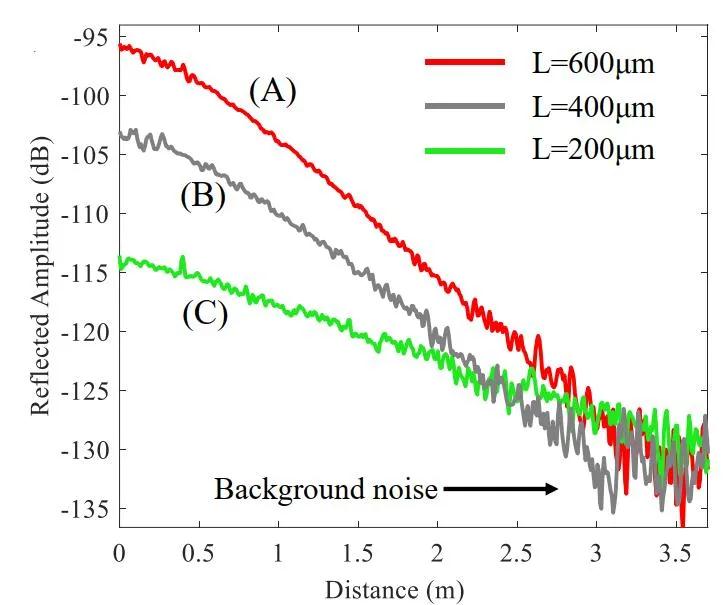 圖4. 三種耦合長度微腔的距離域傳播特征