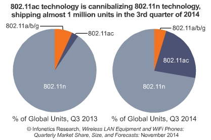 *在過去的一年中,802.11ac接入滲透率幾乎上漲10倍,三季度出貨量接近100萬。