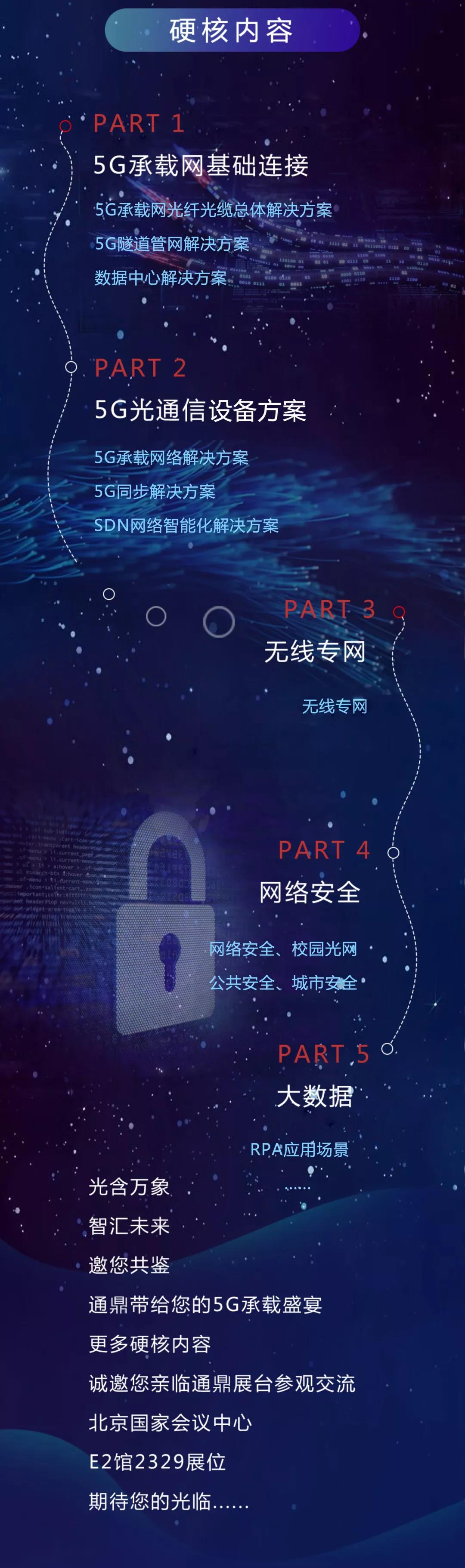 在本屆盛會上,通鼎集團集中展示的有5G承載網(wǎng)基礎連接、5G光通信設備方案、無線專網(wǎng)、網(wǎng)絡安全、大數(shù)據(jù)等系列解決方案。