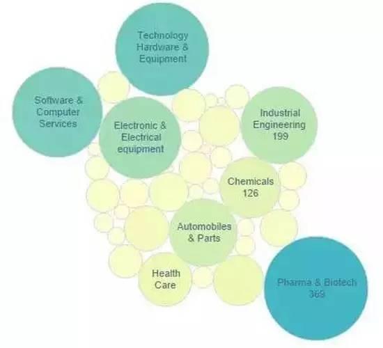 美國(guó)企業(yè)研發(fā)投入占全球的38.6%,其次是日本、德國(guó)和中國(guó),中國(guó)企業(yè)的投資額同比猛增24.7%,全球占比由前一年的5.9%提高到7.2%。研發(fā)增長(zhǎng)最大的行業(yè)是ICT(信息、通信和技術(shù)),健康和汽車。
