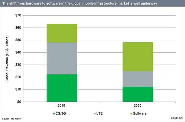 這進(jìn)一步證明,全球移動基礎(chǔ)設(shè)施市場正順利從硬件向軟件進(jìn)行轉(zhuǎn)變,Stephane Teral在一份報告中表示。“所有的指標(biāo)都表明2016年是2G/3G/4G宏蜂窩部署下滑的第一年。”