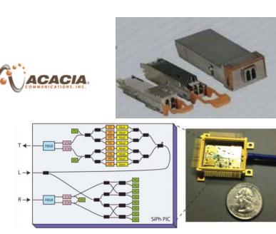 硅光子芯片在100G,400G及以上的高速短距光通信場景中優(yōu)勢明顯。2020年初,Acacia宣布出樣包括400ZR, OPENZR+和Open ROADM MSA的多種400G 可插拔硅光相干模塊,并稱將繼續(xù)擴(kuò)大相干技術(shù)在更短距離中的應(yīng)用。